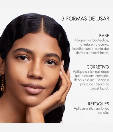 Ref: O primeiro bastão de base multiuso da Dior, com 24 horas de duração¹ e hidratação², que proporciona um acabamento natural e difuso. Sua cobertura é modular, permitindo uniformizar o tom da pele e disfarçar visivelmente as imperfeições com um simples gesto. A pele permanece hidratada continuamente, respirando livremente.