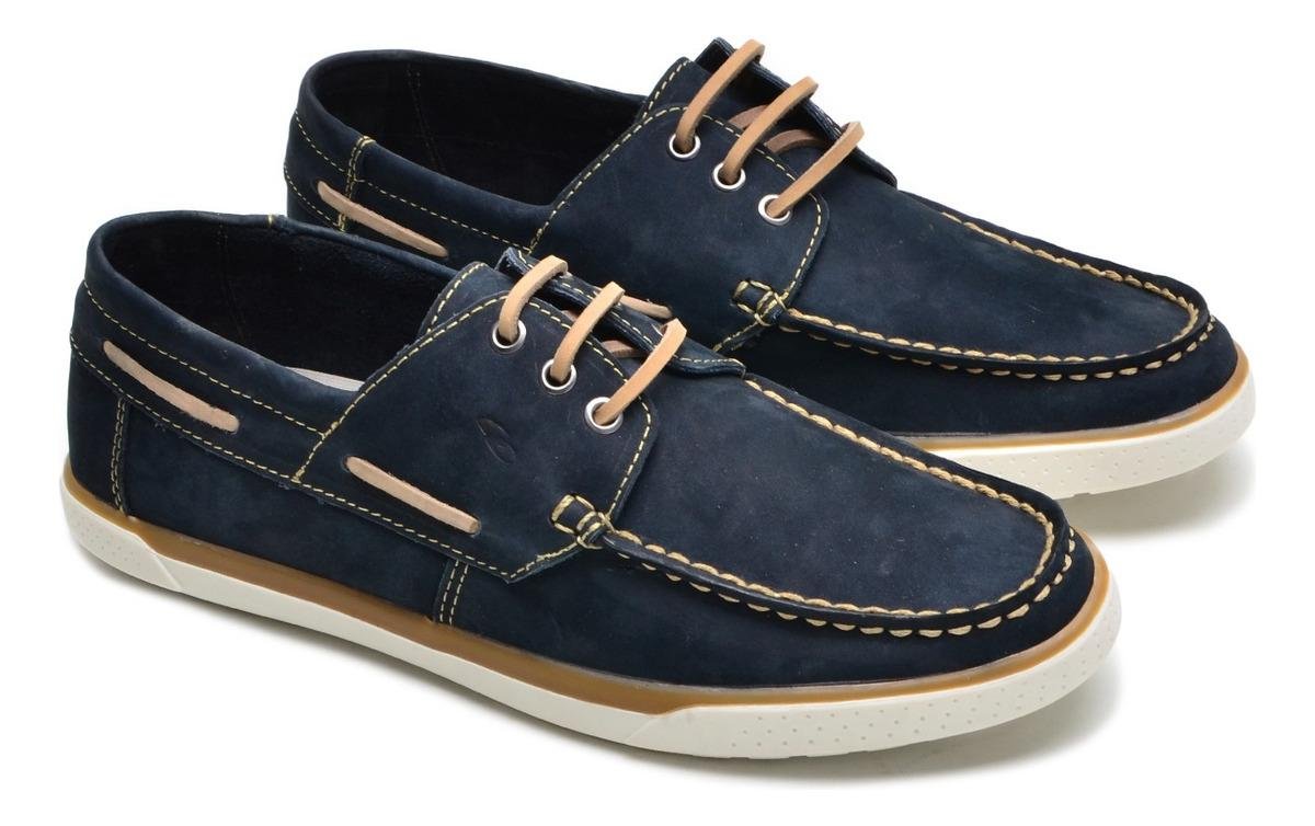 Docksider Masculino Couro Nobuck Cadarco e Solado em Borracha Casual