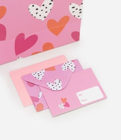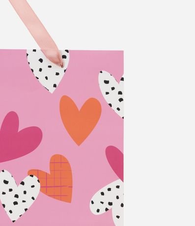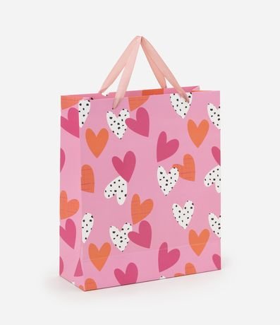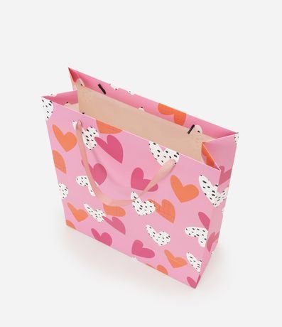 Ref: Sacola média confeccionada em material mais sustentável com alça fina dupla, estampa de corações. Acompanha papel de seda, envelope e cartão.