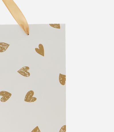 Ref: Sacola de presente grande confeccionada em papel e papelão mais sustentável com alça fina e estampa de corações.