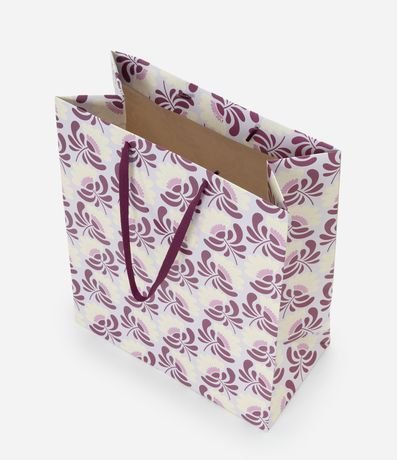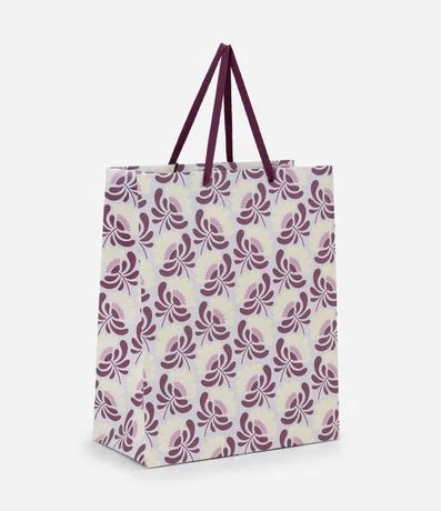 Ref: Embalagem de presente no tamanho médio confeccionado em papel e papelão mais sustentável. Possui estampa floral com alças chatas.