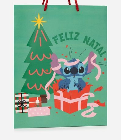 Ref: Sacola média com alças duplas torcidas e estampa de Stitch Natalino.