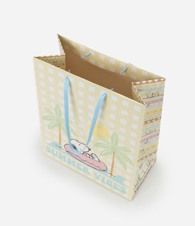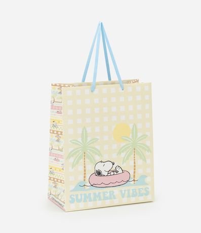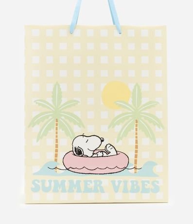 Ref: Sacola de presente média com estampa xadrez e o fofo Snoopy se divertido na praia.