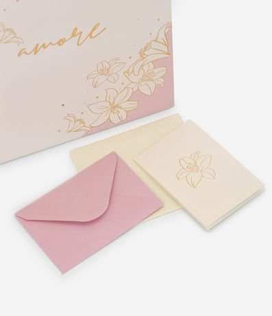 Ref: Embalagem de presente pequena com estampa Amore, detalhes em foil e cartões com envelopes.
