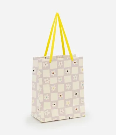 Sacola de presente pequena com alças duplas e estampa de margaridas.
