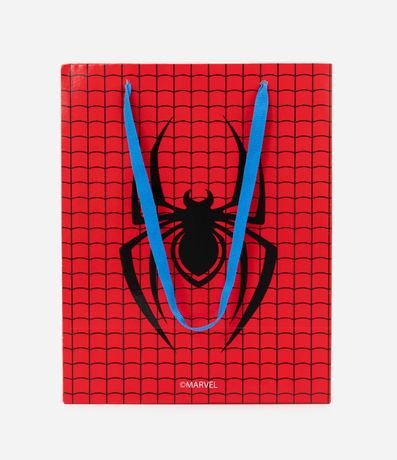Ref: Embalagem de presente pequena modelo sacola, com alças em corda e estampa do Homem Aranha.