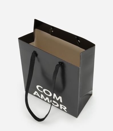 Ref: Sacola de presente pequena com alças duplas e estampa lettering contrastante Com Amor.