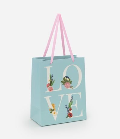 Ref: Embalagem de presente pequena, modelo sacola, com estampa LOVE e flores.