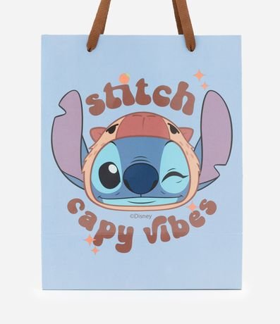 Ref: Sacola de presente pequena com alças duplas e estampa do Stitch Capivara Vibes.