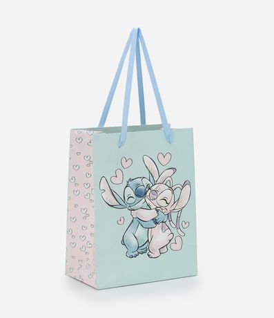 Ref: Sacola de presente pequenas com alças duplas e estampa fofa do casal Stitch e Angel, com coraçõezinhos.