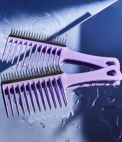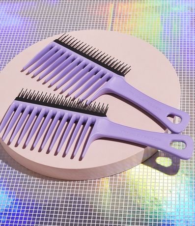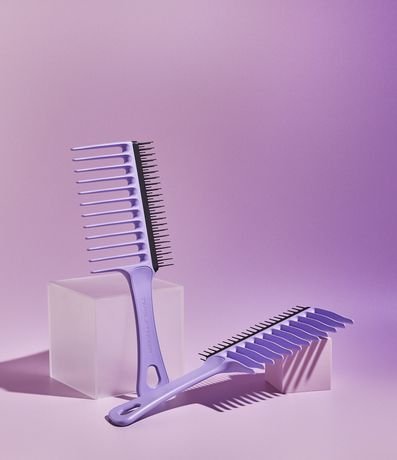 Modo de uso: Nos cabelos molhados ou úmidos separe o cabelo em mexas e com o lado das cerdas maiores, desembarace os fios de baixo para cima. Repita o processo em todo cabelo. Após desembaraçado, com o lado das cerdas menores, passe nas mechas para alinhar os fios e dar mais definição, além de diminuir o fator de encolhimento e o frizz, retira todos os fios soltos e nós sem danificar os fios.