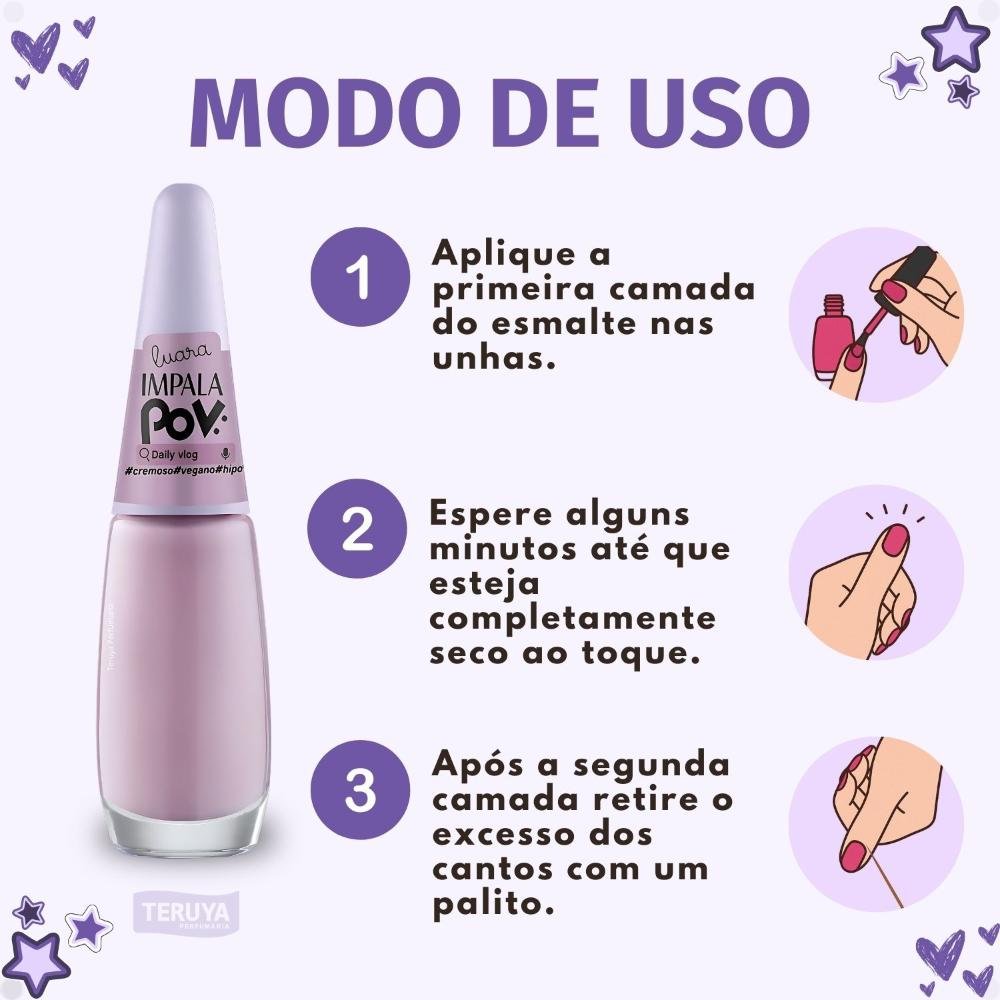 Para obter o melhor resultado com seu Esmalte Cremoso Impala Pov Daily Vlog, siga as instruções: