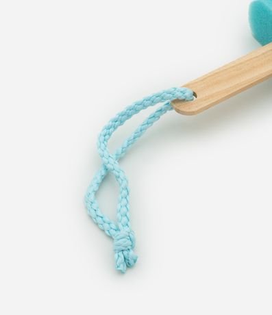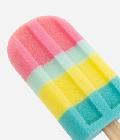 Esponja de banho, modelo espuma, com formato de picolé com palitinho com cordão pendente. Item possui blocos de cores.