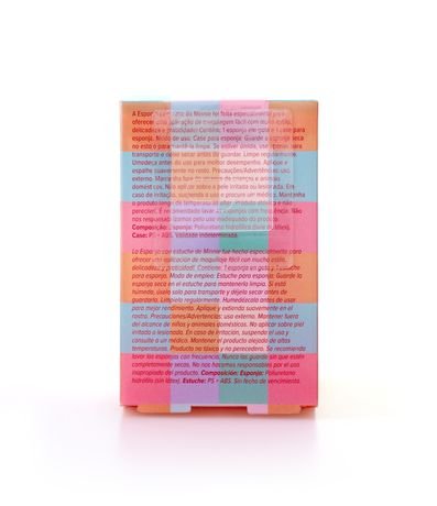 Precauções: Mantenha fora do alcance de crianças. Não utilize sobre pele irritada ou lesionada. Guarde a esponja seca no case para evitar umidade.