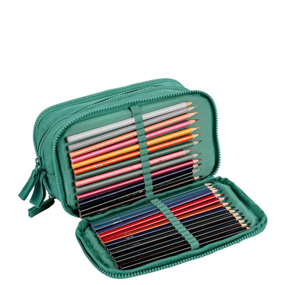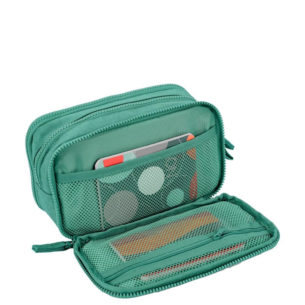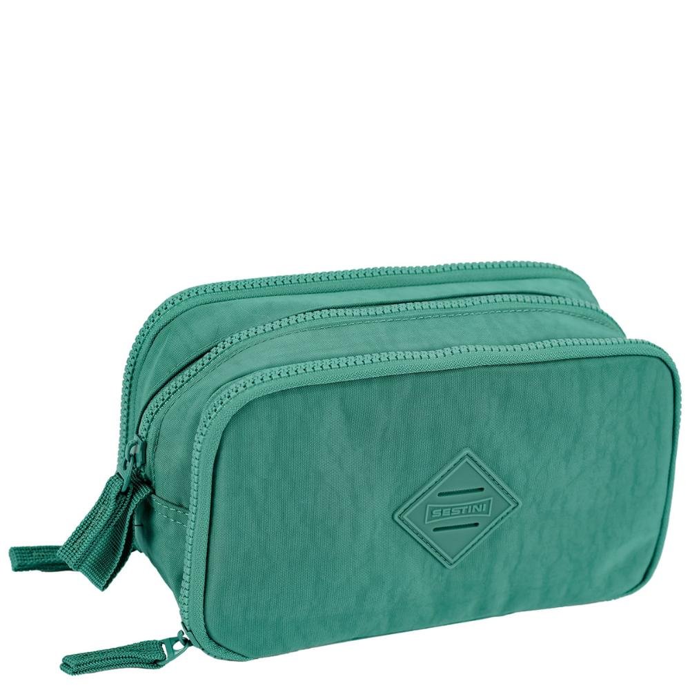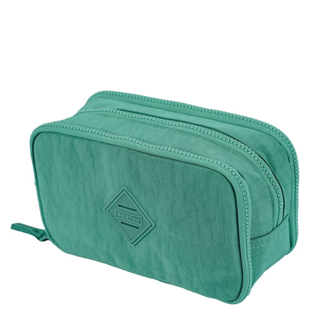 Ref: Estojo Box Especial 3 Compartimentos Crinkle Verde - Jade produzido em nylon.