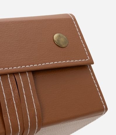 Ref: Estojo para óculos com 04 divisórias, dobrável, fechamento por botão de pressão e alça.
