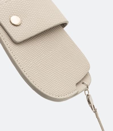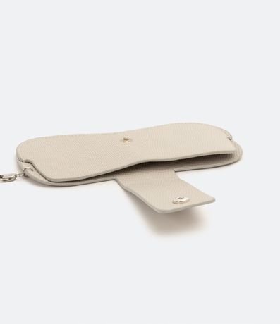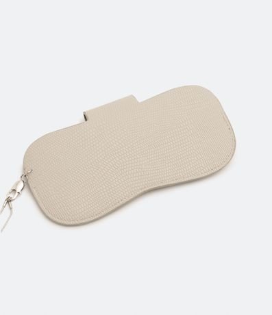 Ref: Estojo de óculos com fechamento por botão, alça de corrente e sem estampa.