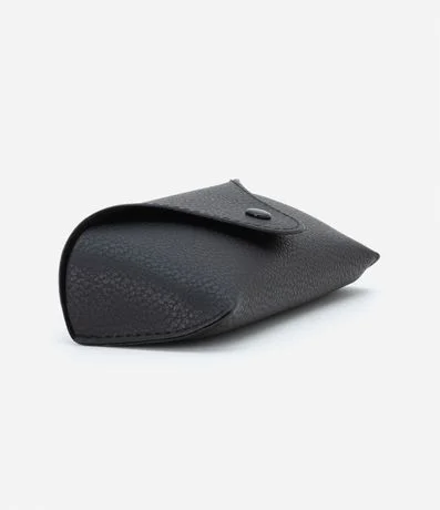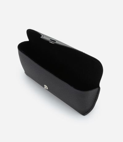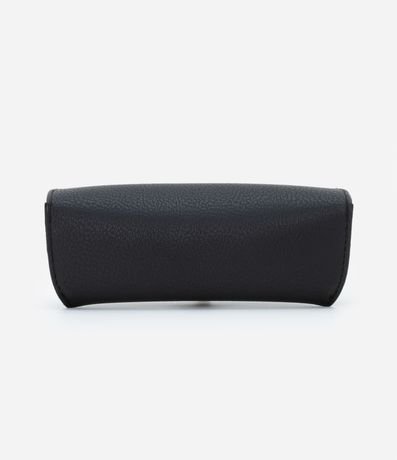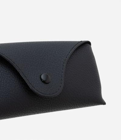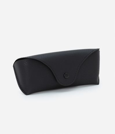 Ref: Estojo de óculos em material sintético, retangular com fechamento por botão.