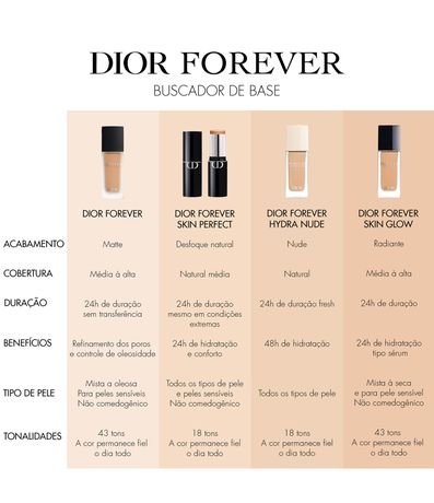 Pela primeira vez, Dior capta a perfeição natural com uma base de acabamento impercetível, com um efeito de pele nua e duração de 24 horas1. Infundida com ácido hialurônico, assegura 48 horas de hidratação2 e deixa a pele respirar durante todo o dia. Composta por 96% de ingredientes de origem natural3 e por pigmentos minerais em perfeita afinidade com a pele, a sua fórmula fresca e leve, embebida com pelo menos 50% de água, funde-se facilmente para um resultado natural. - ACABAMENTO: acabamento de segunda pele - DURAÇÃO: pele fresca durante 24 horas1 - COBERTURA: média, impercetível e sem efeito matéria - CUIDADO: infundida com ácido hialurônico para 48 horas de hidratação2 - TONALIDADES: 18 tonalidades e 3 subtons Não comedogênica. 1 Teste instrumental realizado em 20 pessoas. 2 Teste instrumental realizado em 30 pessoas. 3 Valor calculado com base na norma ISO 16128-1 e ISO 16128-2. Percentagem de água incluída.