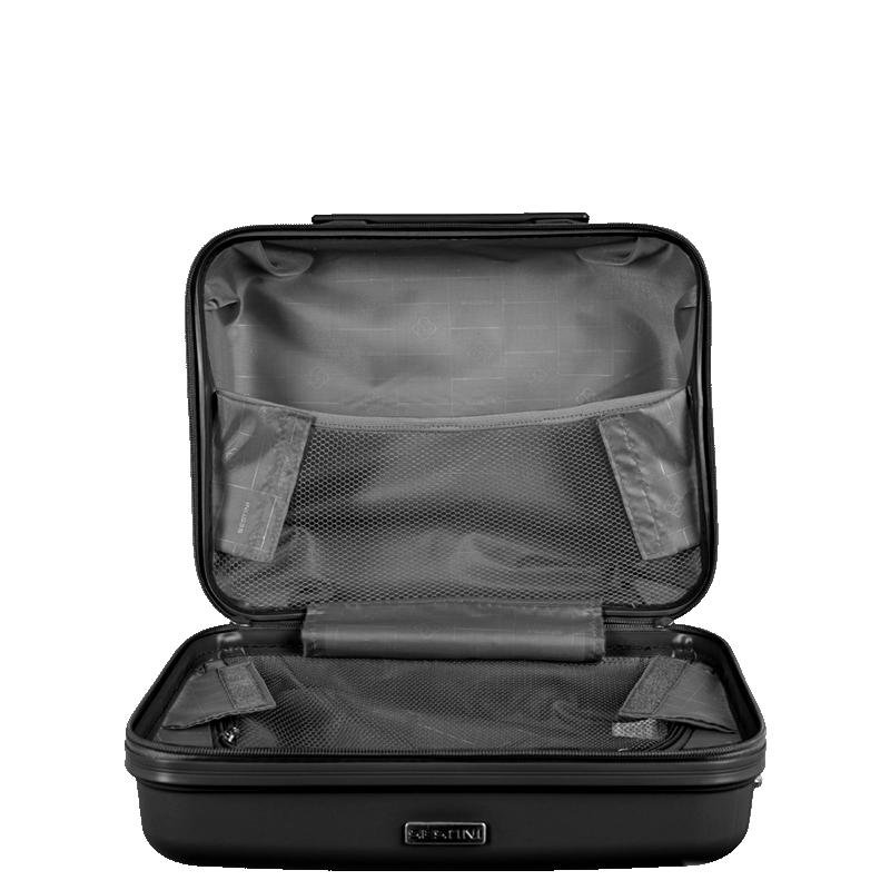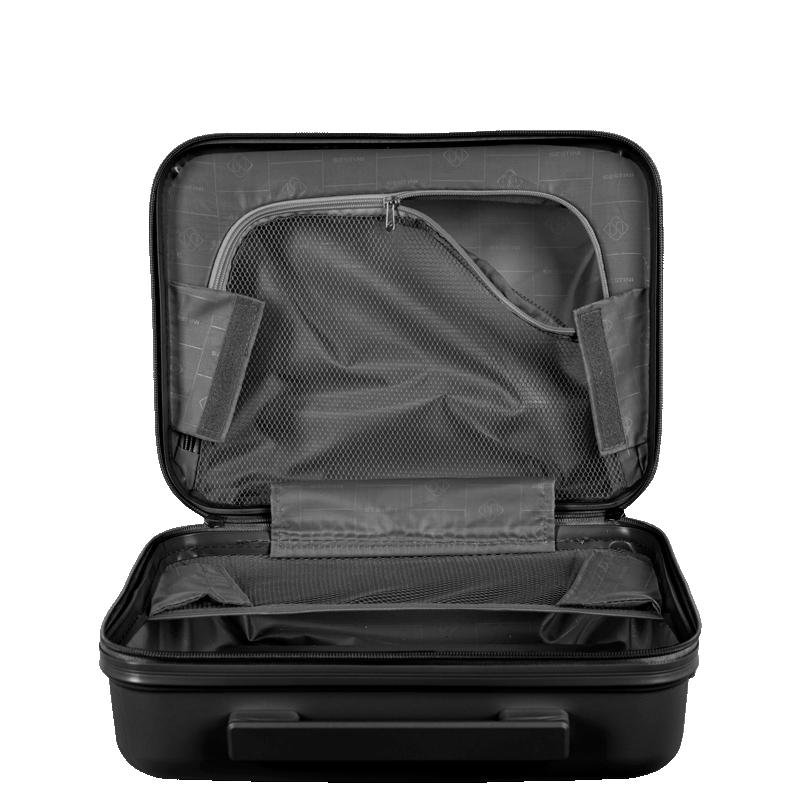 Com um design rígido, a frasqueira oferece segurança e proteção para seus itens. Os puxadores possuem trava para cadeado, proporcionando uma camada extra de segurança. Internamente, conta com uma divisória com zíper, que ajuda a organizar melhor os objetos, evitando que se misturem.