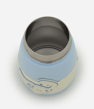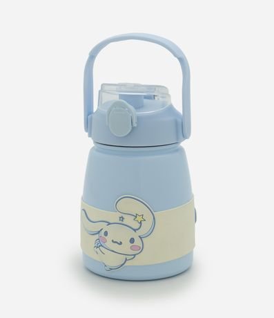 Garrafa térmica com 750ml, confeccionada em metal. Possui tampa com botão de metal para abertura prática, alça superior para transporte e estampa do personagem cinnamoroll, ideal para manter bebidas na temperatura desejada.