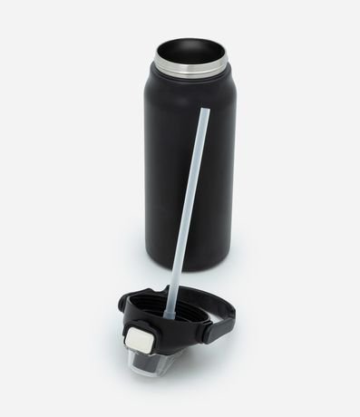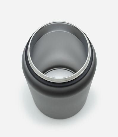 Garrafa térmica feminina com 1,5 litros, possui tampa de rosca, textura emborrachada e alças.