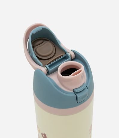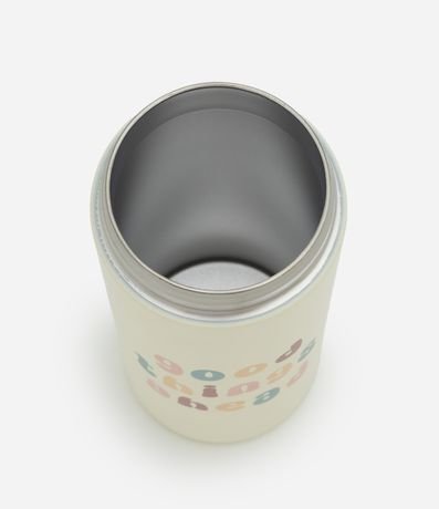 Ref: Garrafa térmica com tampa e bico, alça de mão e estampa lettering good things.