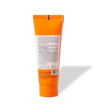 A Vitamina C é um ativo super versátil e possui múltiplas funções que beneficiam a pele. O primeiro destaque vai para sua ação antioxidante, afinal, tudo o que a gente mais quer é uma pele com mais elasticidade e luminosidade. Outro destaque é sua função clareadora, que contribui para a melhoria no aspecto geral da pele, deixando-a mais radiante. E por último, vale falar também que a fórmula desse gel de limpeza possui partículas microabrasivas, que promovem uma esfoliação suave.