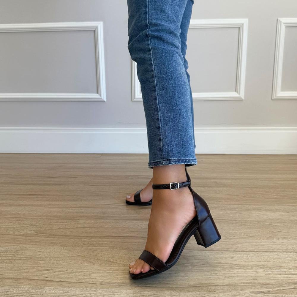 Gisele - Sandália Feminina Marrom com Salto Bloco Médio