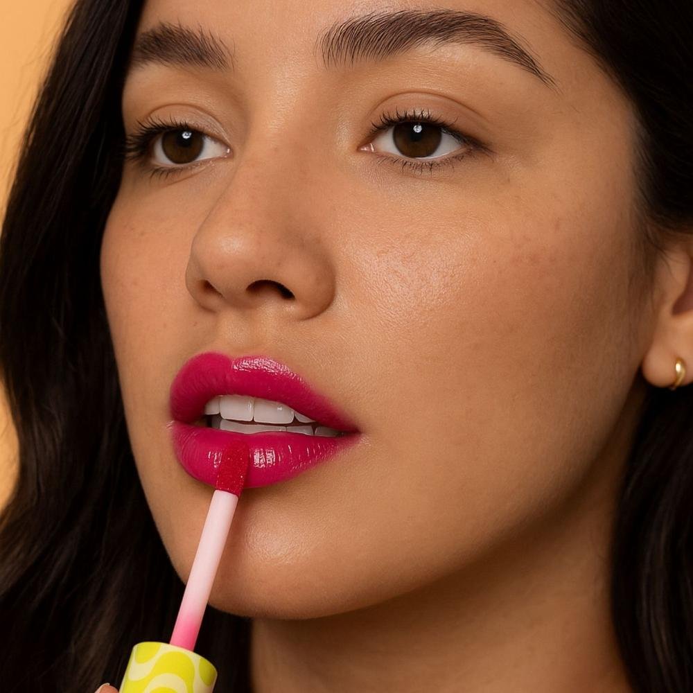 Fórmula leve com textura de gloss e efeito tint que fixa a cor nos lábios.
