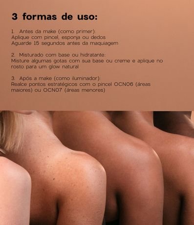 Ele cria um efeito desfocado que uniformiza o tom da pele sem marcar as linhas de expressão e aumenta a durabilidade do seu visual. O Glow Skin possui partículas de brilho que iluminam o rosto e dão um toque todo especial para a Maquiagem.