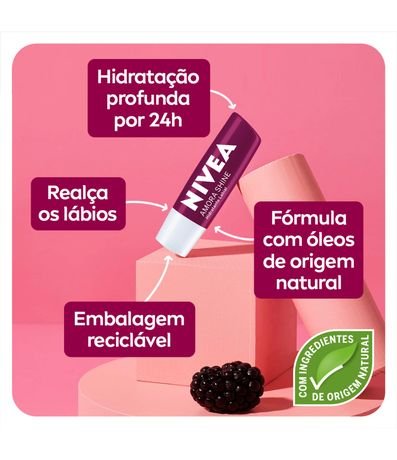 Dermatologicamente testado, é uma escolha confiável para lábios irresistíveis. Experimente o toque radiante da amora com Nivea Amora Shine.