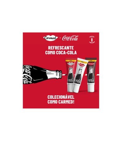 Ref: Hidratante Labial com Manteiga de Cacau Marrom Coca-Cola Carmed Caixa 10g Edição Limitada