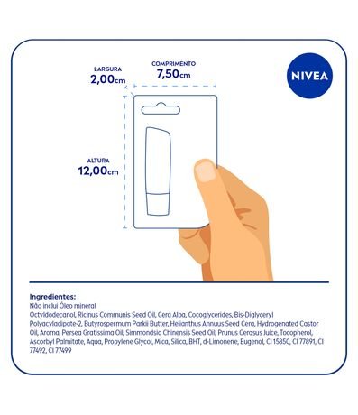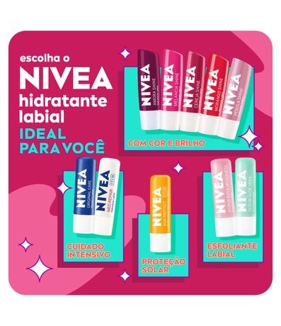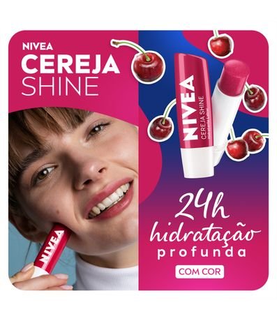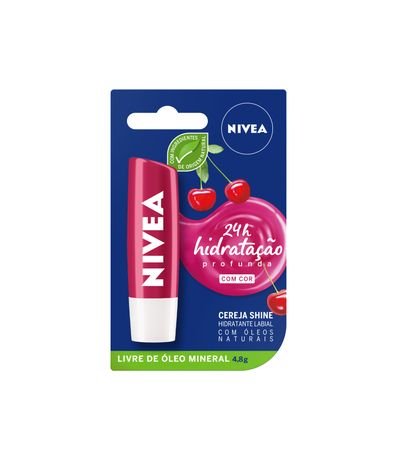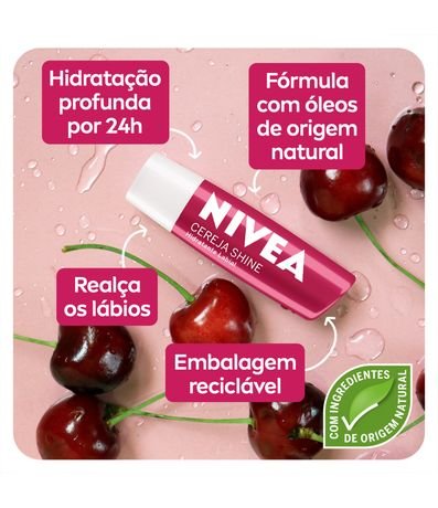 O que é? NIVEA Hidratante Labial Cereja Shine é um produto essencial para cuidar e proteger os lábios durante 24 horas. Para que serve? Sua fórmula contém óleos naturais que proporcionam hidratação intensa, deixando os lábios sempre macios. Além disso, possui um aroma delicioso de cereja e um suave brilho rosa, que realça a beleza dos lábios. Ele serve para hidratar e proteger os lábios, garantindo uma aplicação uniforme e sem necessidade de espelho. Sua embalagem é reciclável, contribuindo para a preservação do meio ambiente. Com óleos de abacate e jojoba em sua composição, proporciona benefícios extras para a saúde dos lábios. Benefícios e diferenciais:- Nova fórmula- Aroma delicioso de cereja- Delicado brilho rosa- Livre de óleos minerais- Embalagem reciclável