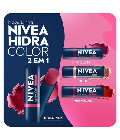O que é? NIVEA Hidratante Labial Hidra Color 2 em 1 Rosa Pink é um produto que une intensa cor com o cuidado confiável da? NIVEA. Para que serve?Sua fórmula, livre de óleo mineral, é enriquecida com manteiga de karité, óleo de amêndoas orgânico e vitamina E. Com tom rosa intenso e suave aroma floral, é perfeito para uso diário. Além de proporcionar beleza, protege contra o ressecamento, oferecendo hidratação duradoura. Sua textura cremosa desliza suavemente, permitindo construir a intensidade da cor. Prático e versátil, é ideal para retoques a qualquer momento para manter os lábios hidratados e vibrantes.Benefícios e diferenciais:- Protege os lábios contra o ressecamento- Promove hidratação de longa duração- Livre de óleo mineral- Contém manteiga de karité, óleo de amêndoas orgânico e vitamina E- Cor intensa a cada camada aplicada