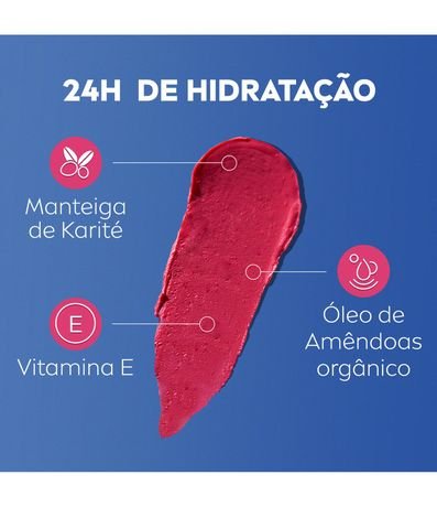 NIVEA Hidra Color Rosa Pink é a combinação ideal de uma cor intensa com um cuidado diário para os seus lábios. Sua nova fórmula avançada 3 em 1 oferece 24h de hidratação, cor intensa para os lábios e bochechas e proteção contra raios UVA/UVB. Livre de óleo mineral, enriquecida com manteiga de karité, óleo de amêndoas orgânico e vitamina E.