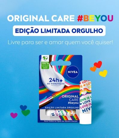 Ref: NIVEA Hidratante Labial Original Care Orgulho é uma edição especial que celebra a diversidade e o amor em todas as formas. Com um design exclusivo da Edição do Beijo do Orgulho, ele simboliza um sinal visível contra o ódio e a intolerância.