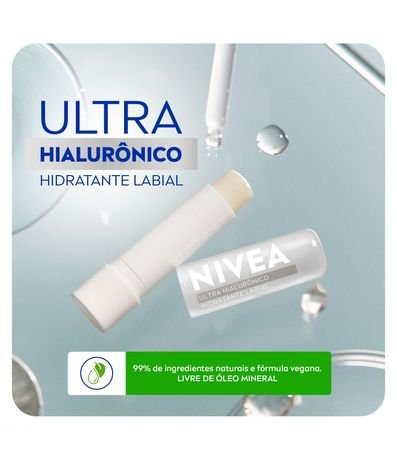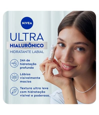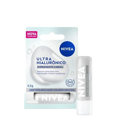 O NIVEA Hidratante Labial Ultra Hialurônico possui fórmula ultra-hidratante que preenche profundamente os lábios por 24 horas. Sua textura é ultra-leve e não oleosa, garantindo maciez e hidratação instantânea.