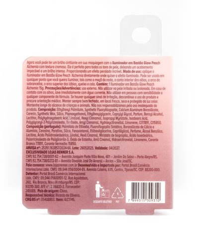 Brilhe muito nas festas de fim de ano e arrase no verão com o Iluminador em Bastão Glow Peach da Alchemia! Desenvolvido para todos os tons de pele, ele possui textura cremosa e partículas cintilantes que proporcionam um acabamento impecável e um efeito iluminado intenso. A cor Peach é perfeita para dar aquele toque radiante e sofisticado, realçando os pontos fortes do rosto com praticidade.