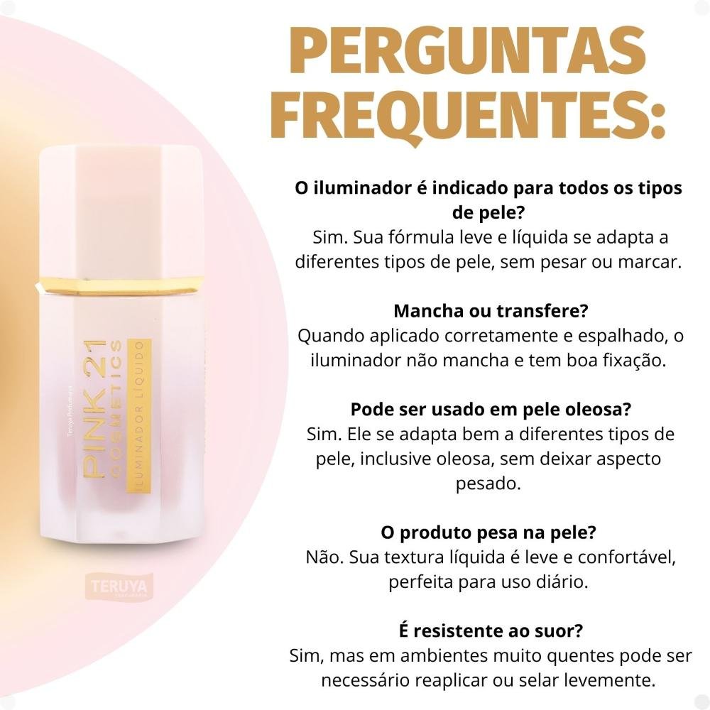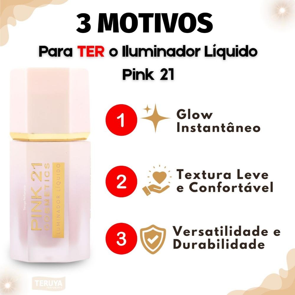 Com sua fórmula inovadora, o Iluminador Líquido Pink 21 é fácil de aplicar, garantindo um visual deslumbrante e duradouro. Adicione este brilho essencial à sua rotina de maquiagem e prepare-se para deslumbrar!