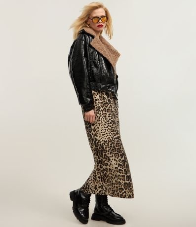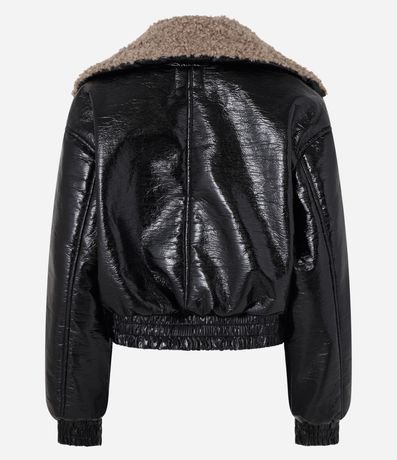 Jaqueta Biker em PU com Efeito Envernizado e Pelinhos