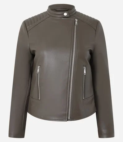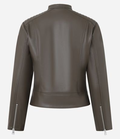 Ref: Jaqueta biker feminina, confeccionada em PU, com fechamentos em zíper, textura de matelassê nos ombros e superfície sem estampa.