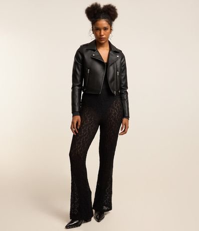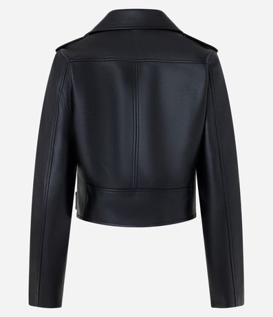 Ref: Jaqueta biker confeccionada em material sintético, pu, com bolsos de zíper e tiras com botões nas laterais.