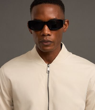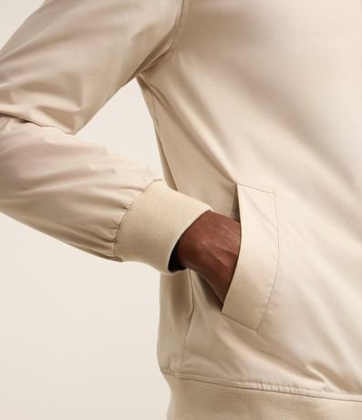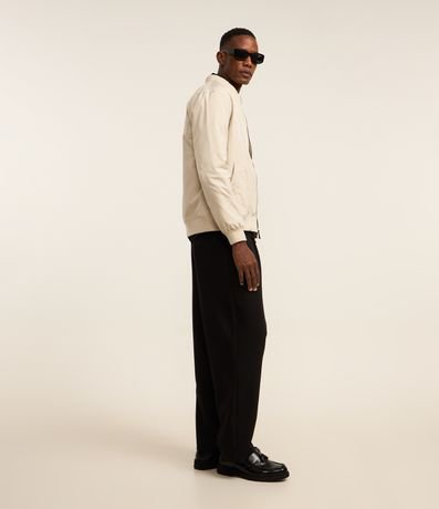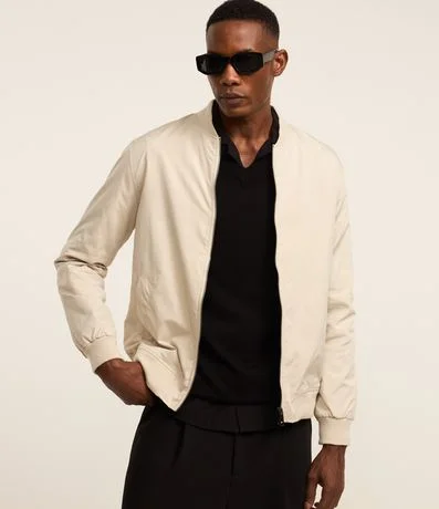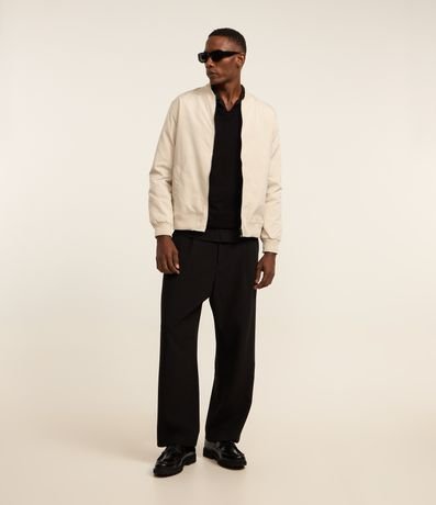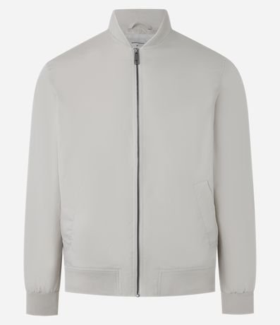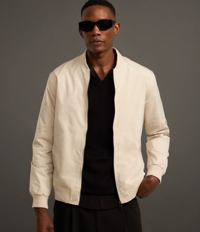 Ref: Jaqueta masculina em alfaiataria no modelo bomber, gola alta, zíper, bolsos laterais, manga e barra com ajustes.