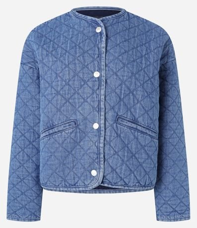 Ref: Jaqueta bomber com textura matelassê, cava deslocada, fechamento por botões frontais e bolsinhos embutidos.
