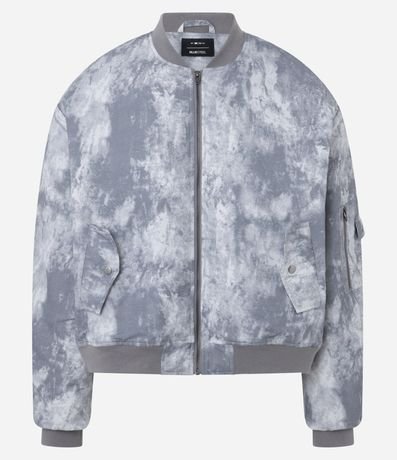 Jaqueta Bomber em Microfibra com Estampa Marmorizado