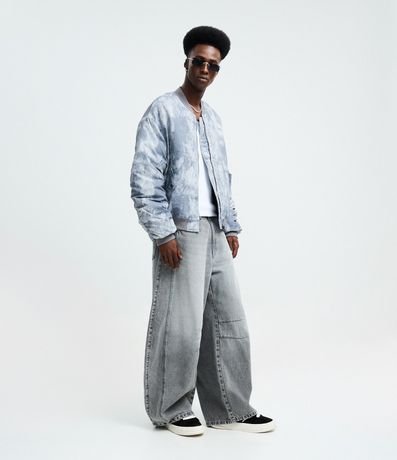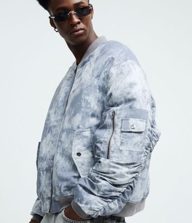Jaqueta bomber masculina confeccionada em poliamida biodegradável com estampa marmorizada, gola média, fechamento por zíper, bolsos frontais e bolso na manga. Manga longa com punhos ajustados e barra elástica para conforto e estilo.