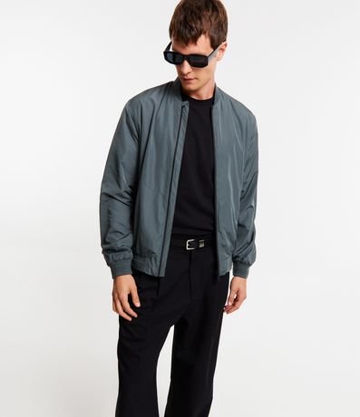 Jaqueta bomber masculina, com bolsos fusionados. Um marco do mundo da moda, a jaqueta bomber nunca sai de cena. Este modelo, em poliamida, ainda garante resistência à umidade. Uma ótima e estilosa opção para dias mais frios e chuvosos.