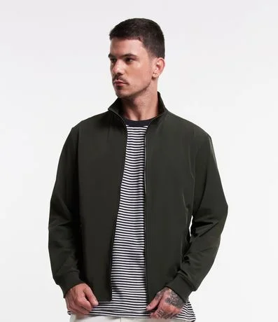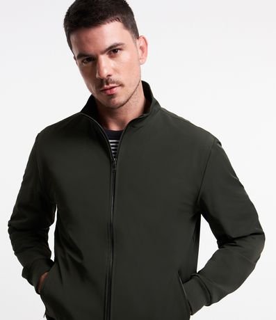 Ref: Jaqueta masculina confeccionada em poliamida elástica, com gola alta e bolsos. Possui abertura frontal total com zíper.