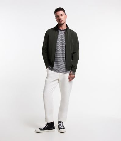 A jaqueta bomber é um modelo leve, possui elástico no punho e cintura, e também bolsos. É uma peça curinga, versátil e pode ser combinada em diversos looks, desde os mais modernos, até combinações com uma pegada mais esportiva.